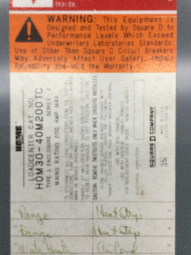 Square D HOM30-40M200TC 200 Amp 30 Space 120/240V Panel Door 35" x 15 1/2"