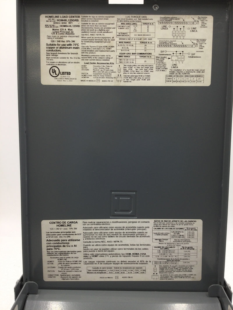 Square D HOM48L125GRB Outdoor Main Lug Load Center 125 Amp 4 Space/8 Circuits 120/240V 1 Phase 14.8" x 9.31"
