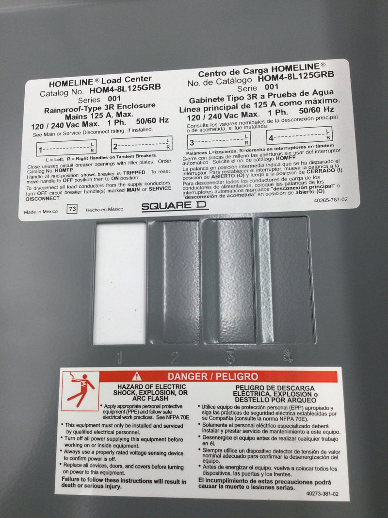 Square D HOM48L125GRB Outdoor Main Lug Load Center 125 Amp 4 Space/8 Circuits 120/240V 1 Phase