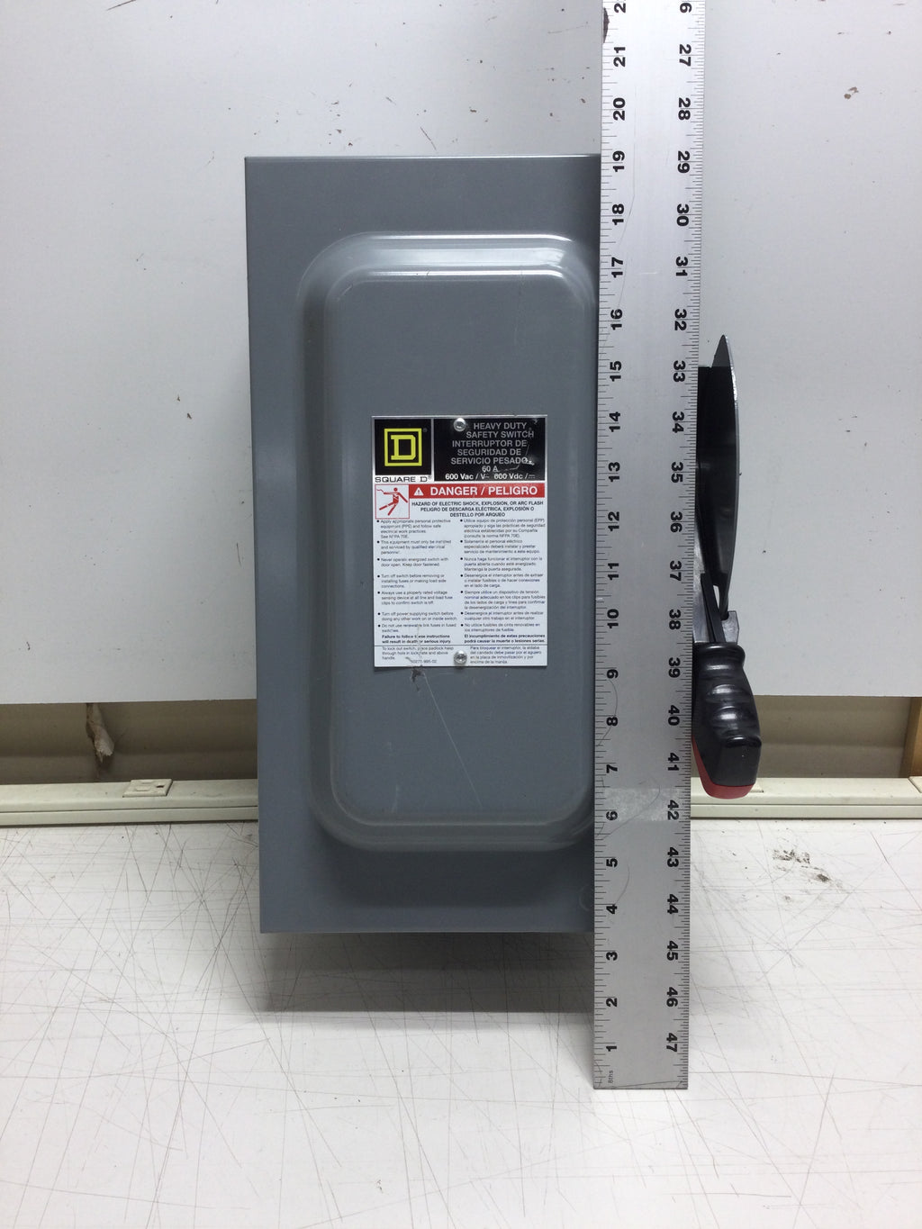 Square D HU362AWK Type HU 60 Amp 600v 3 Pole 3 Phase Nema 12 Series F06 Disconnect Switch Non Fusible