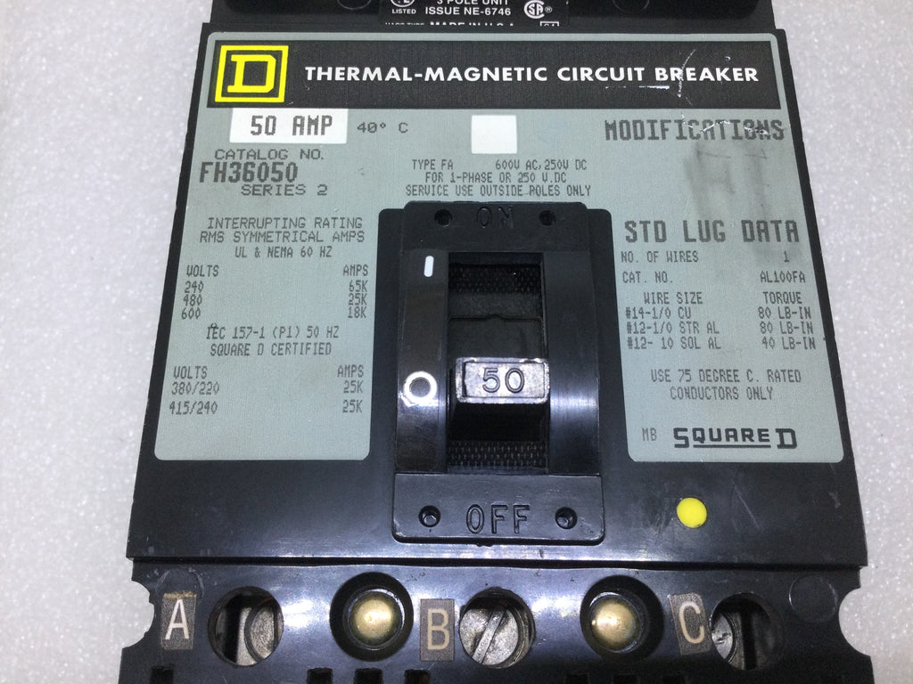 The Square D FH36050 is a reliable, high-performance 50 Amp 600 Vac 3 Pole Type FH-36050 I-Line Circuit Breaker. Its robust design offers superior protection and durability, making it ideal for commercial and industrial applications. Trust in its precision and efficiency for all your electrical needs.