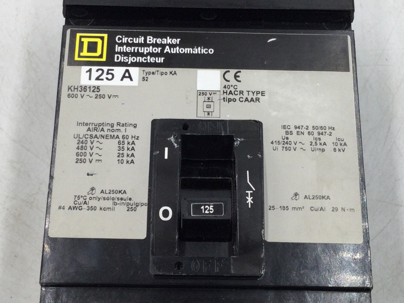 Square D KH36125 125 Amp 3 Pole 480/600v Type KA I Line Circuit Breaker