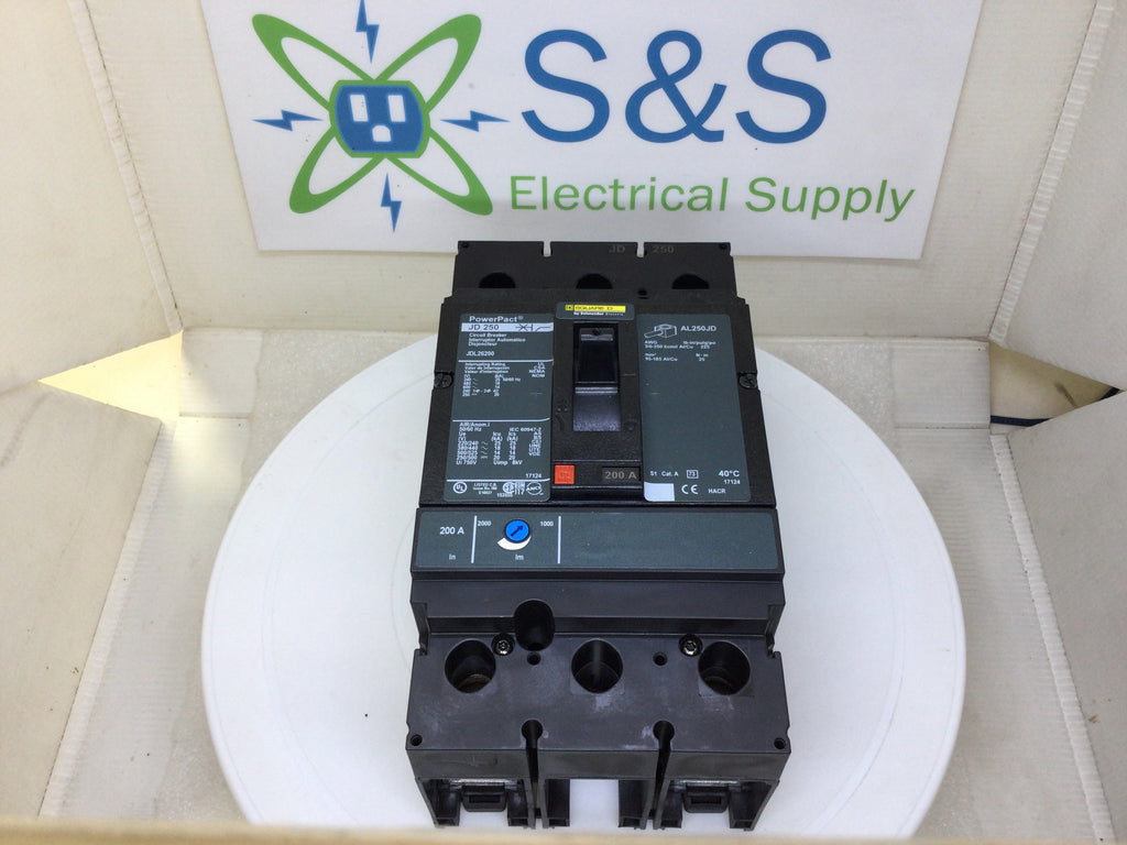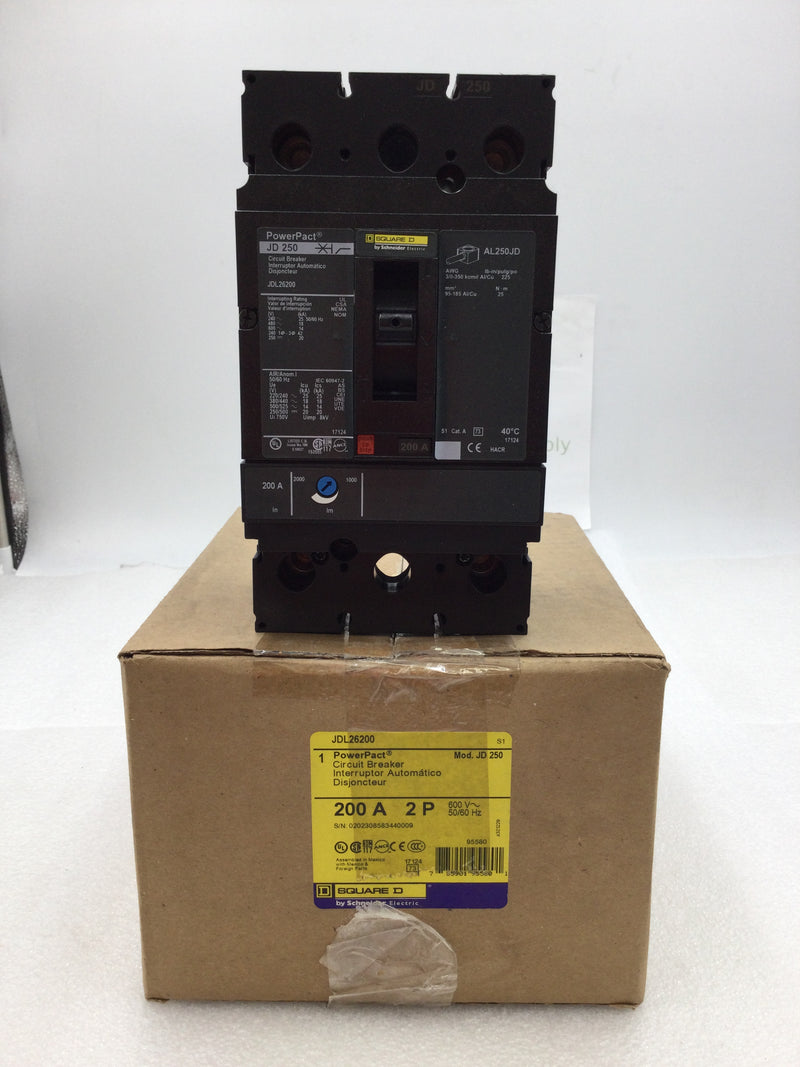 Square D JDL26200 200 Amp 2 Pole 600V PowerPact Circuit Breaker