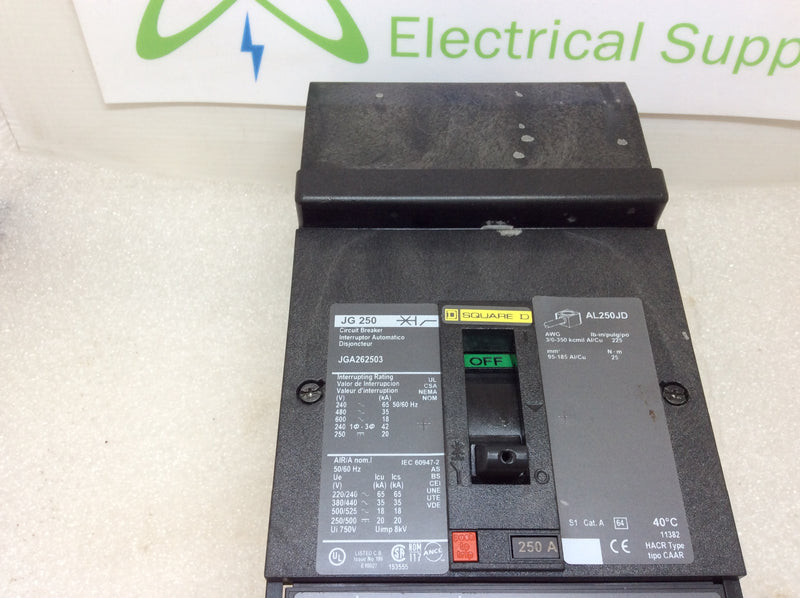 Square D JGA262503 JG250 250 Amp 3 Pole 600v AL250JD PowerPact I Line Circuit Breaker