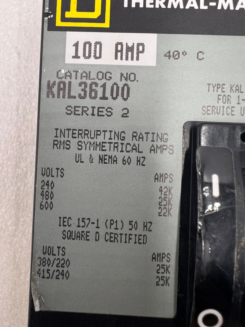 Square D KAL36100 3 Pole 600v 100 Amp Circuit Breaker