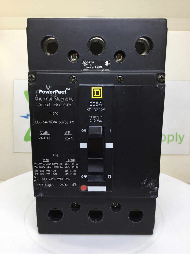 Square D KDL32225 225 Amp 3 Pole 240V PowerPact Circuit Breaker