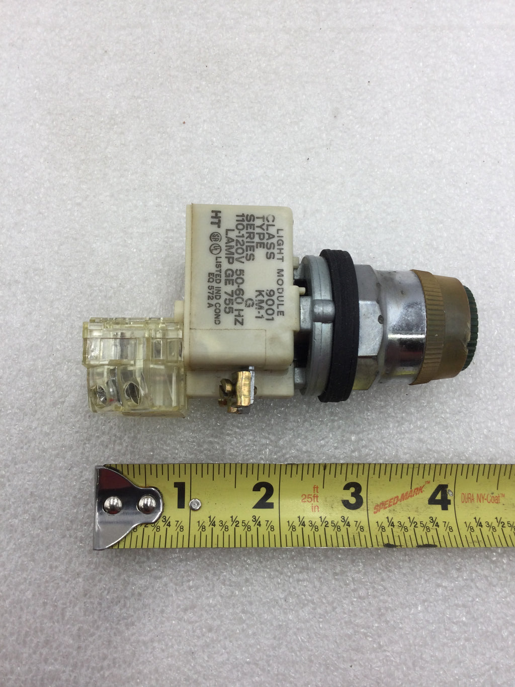 Square D 9001 KM-1 Green Pilot Light Module 110-120 VAC 50/60Hz Lamp GE 755 Series G with KA-2 Push Button Module