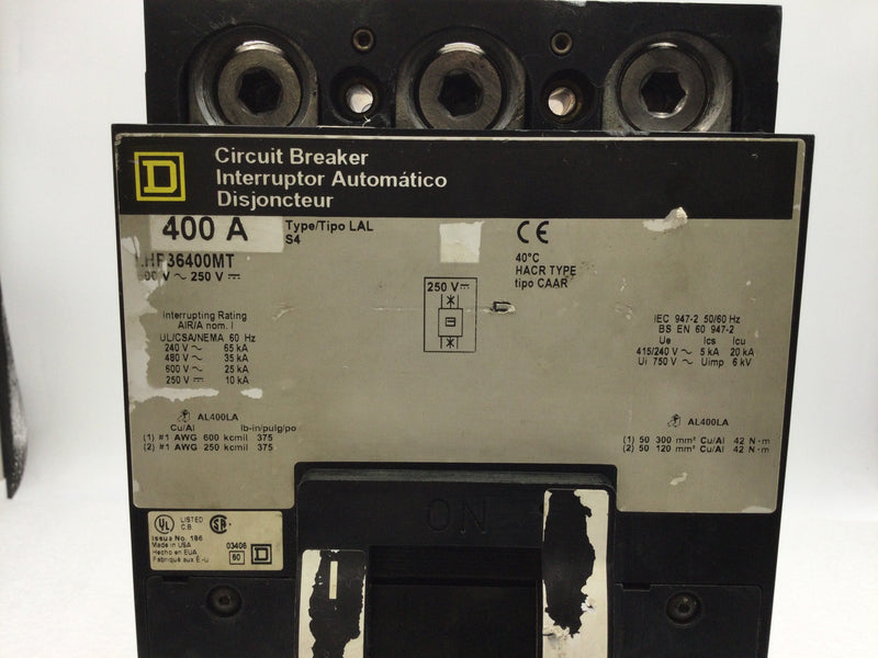 Square D LHP36400MT 400 Amp 600 Volt 3 Pole Circuit Breaker