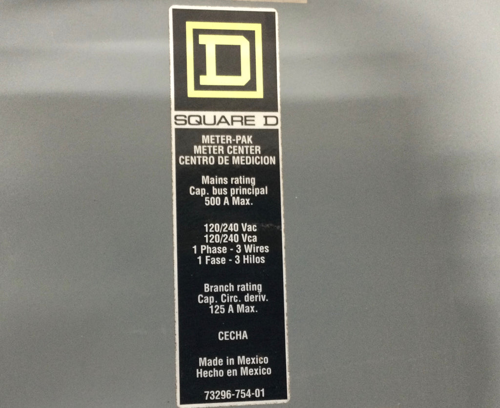 Square D MP155125 500 Amp 240V 1 PH 3 Wire Main Lug MP Meter Pack/Panel Box