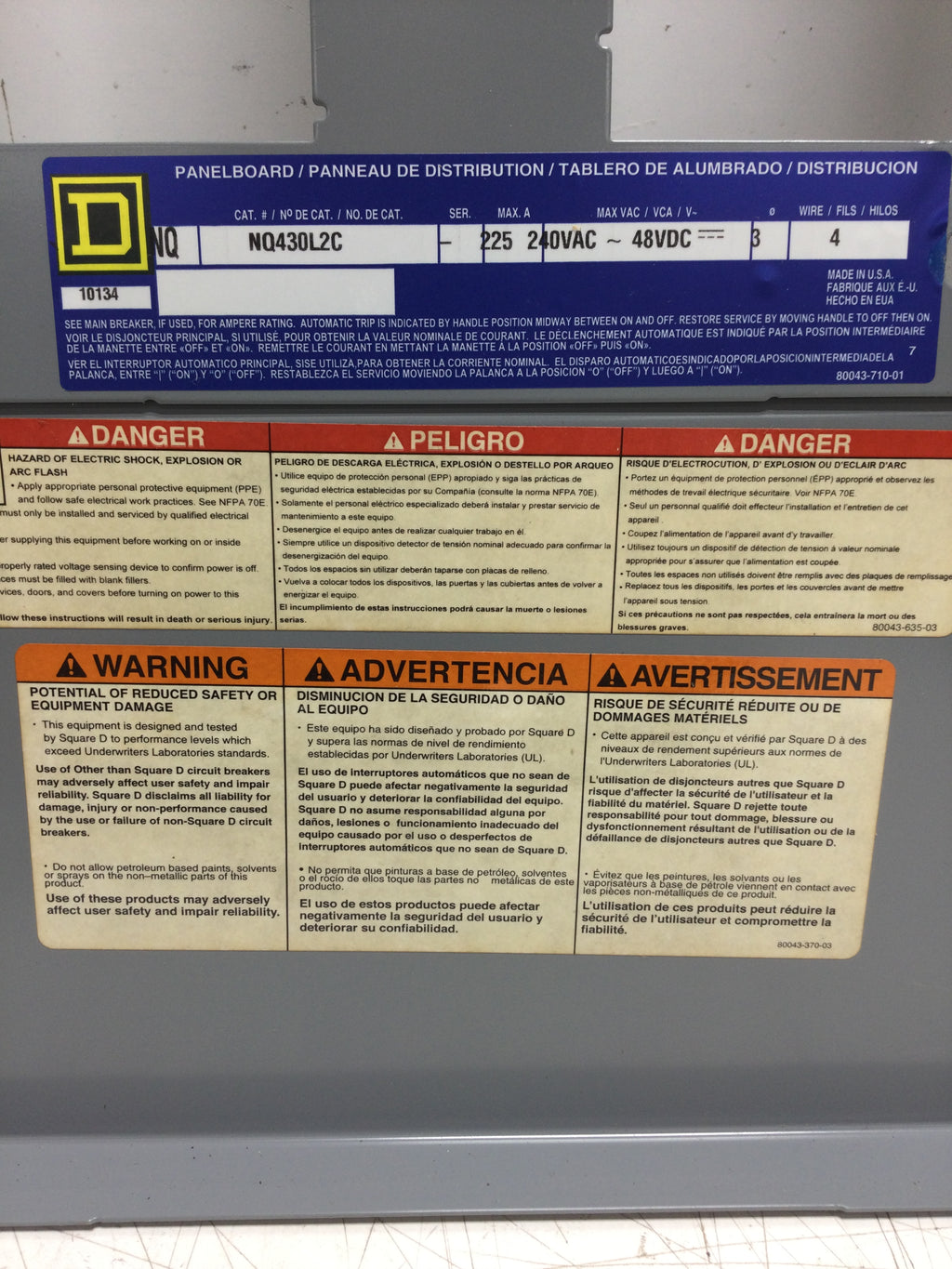 Square D NQ430L2C 225 Amp 30 Space 240V Interior Panelboard 27 3/4" x 12 3/4"