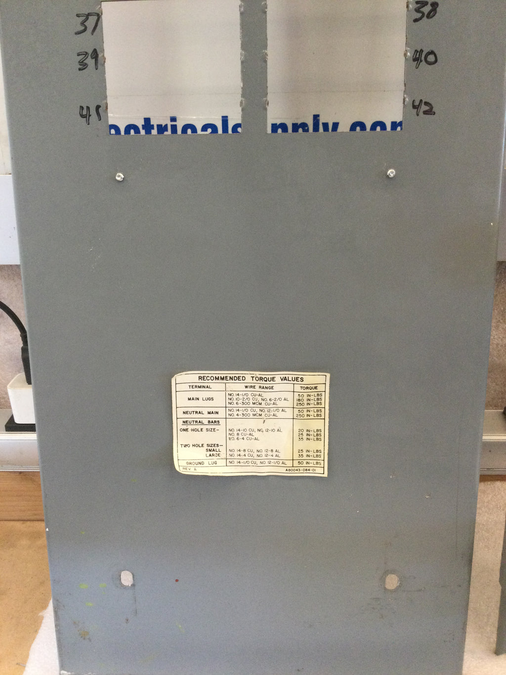 Square D NQO-88420-079, 120/208VAC, 3Ph/4 Wire, 42 Circuit, 225A Max, Type NQO Panel Board Interior
