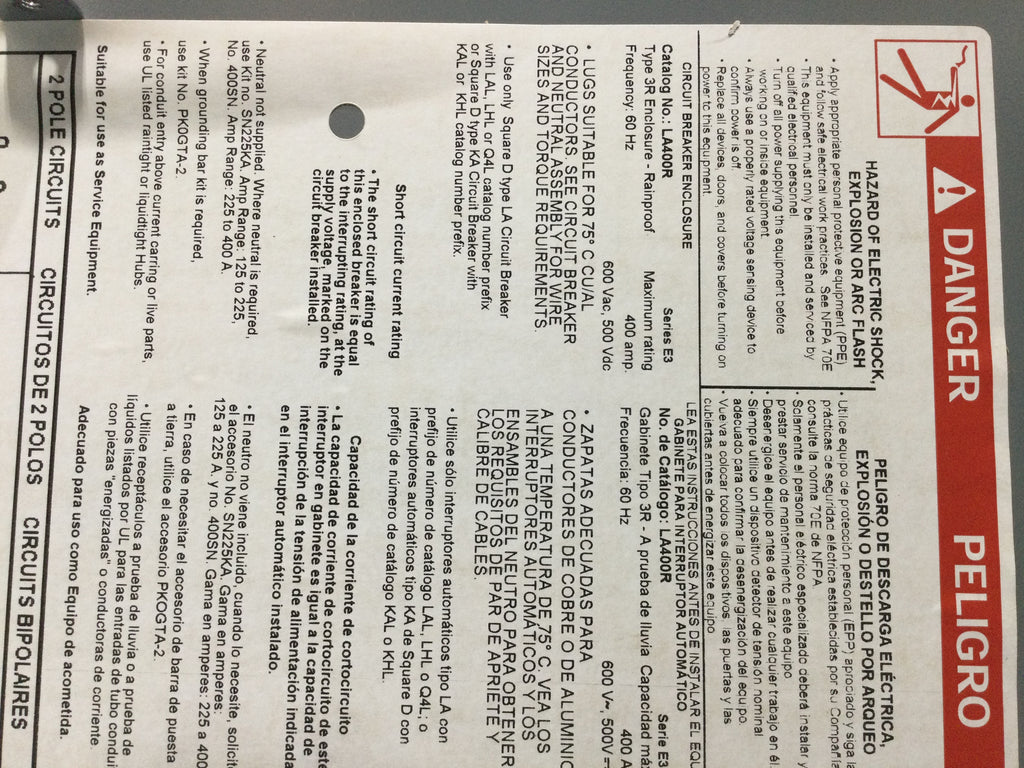LA400R - Circuit breaker enclosure, LA, 125A to 400A, NEMA 3R, 15.38in W x 44in H x 7.88in D | Schneider Electric USA (se.com)