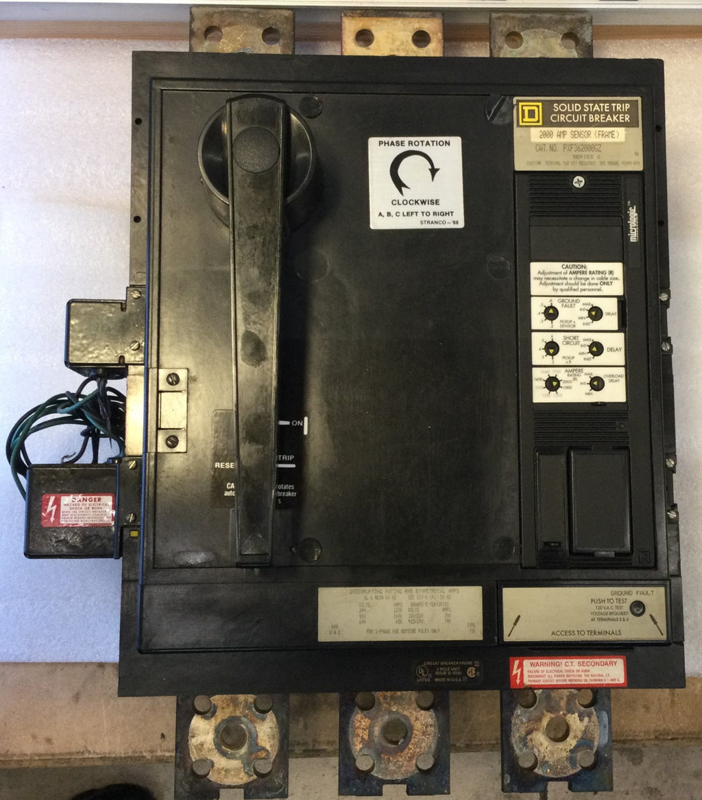 Square D PXF362000GZ, 2000A Sensor Frame Breaker, 600V, 3 Pole, Type PXL, 208/480V Shunt Trip, Cat. # PA11086