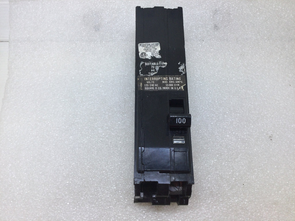 Square D Q12100TF 100 Amp 2 Pole 120/240v Type Q1TF Top Feed Circuit Breaker