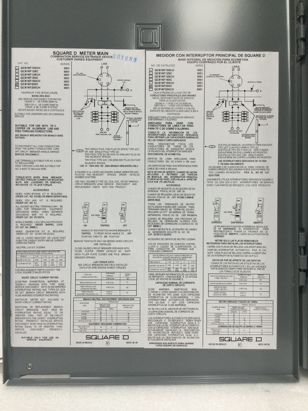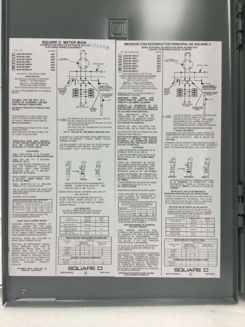 Square D QC816F200C 200 Amp 16 Space 120/240V Enclosure 35" x 14 1/2"