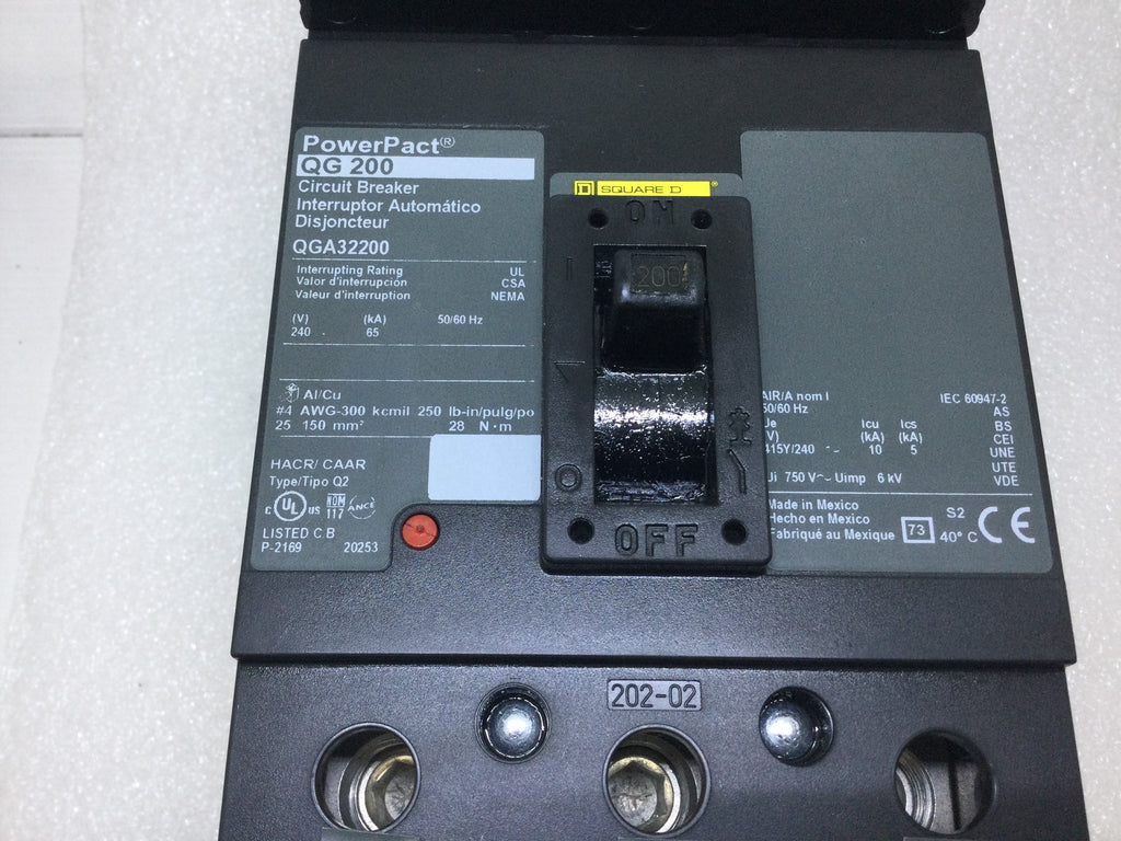 Square D QGA32200 200 Amp 3 Pole 240V PowerPact I Line Circuit Breaker