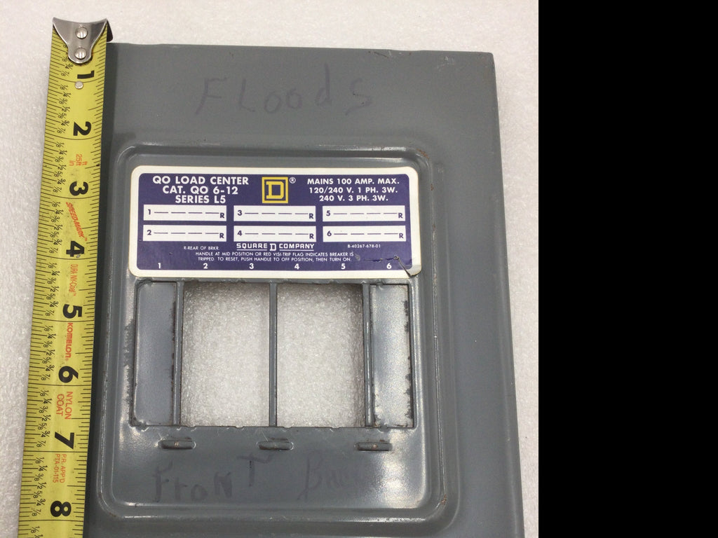 Square D QO 6-12 Series L5 100 Amp 120/240V 1 Phase 3 Wire 6 Space Dead Front 10 1/8" x 7 5/8"