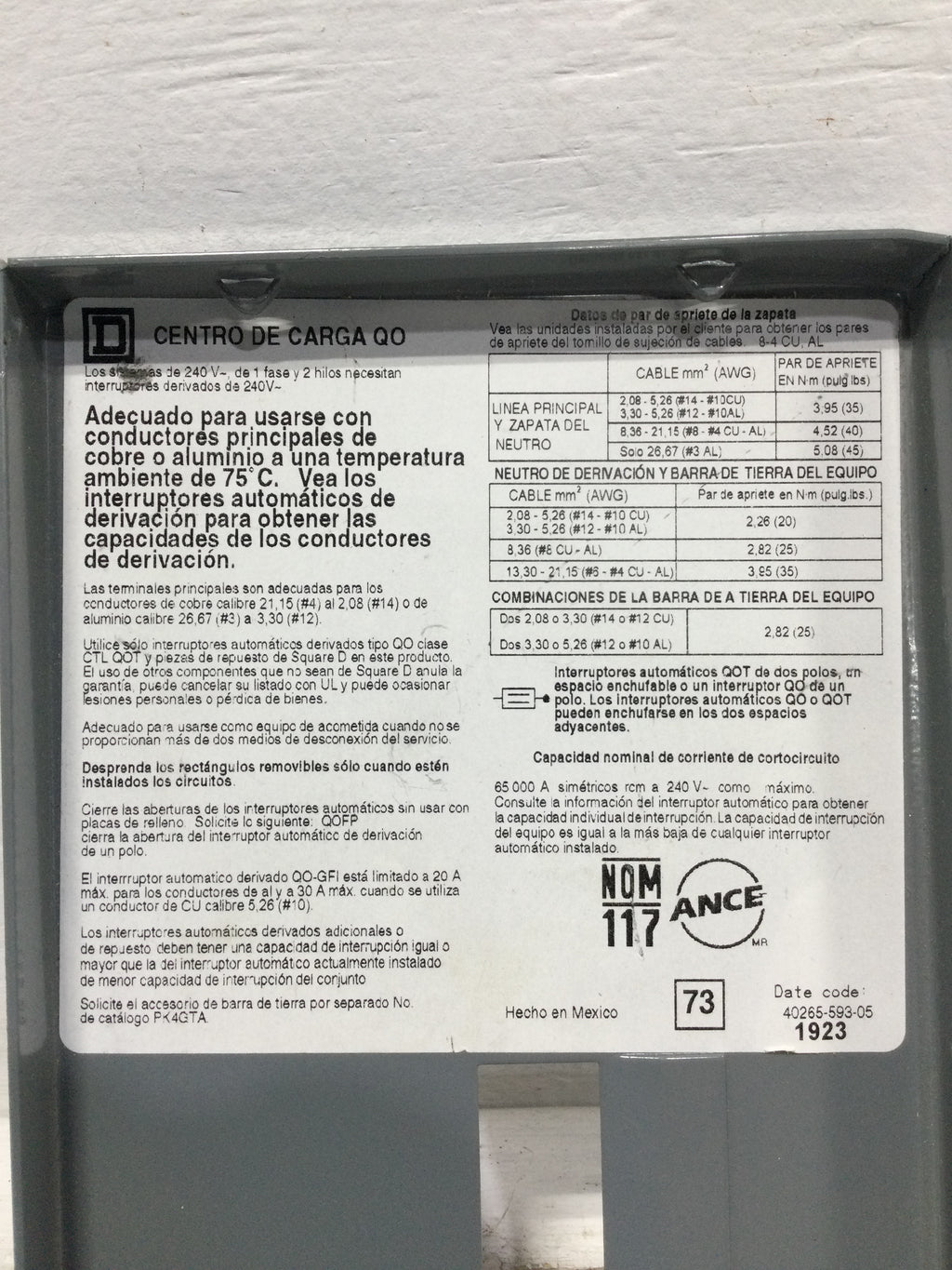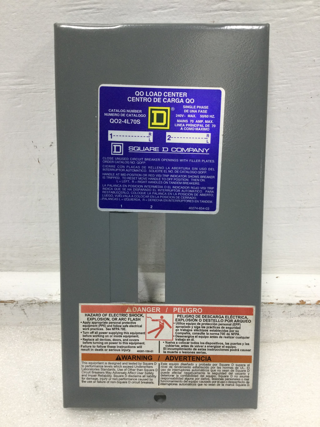 Square D QO2-4L70S 70 Amp 2 Space 240V Cover Only 9 5/8" x 5"