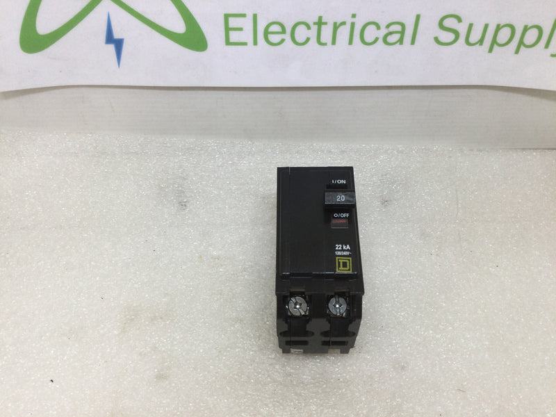 Square D QO220VH 20 Amp 2 Pole 120/240V Type QO Circuit Breaker - Yellow Face