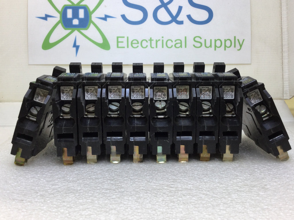Square D QOB120 20 Amp 1 Pole 120/240V Bolt On Circuit Breaker - Lot of 10 Yellow Face Black #'s