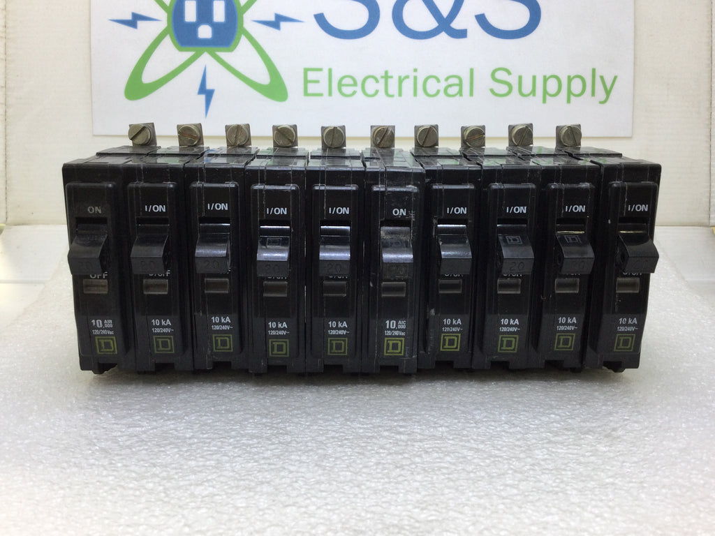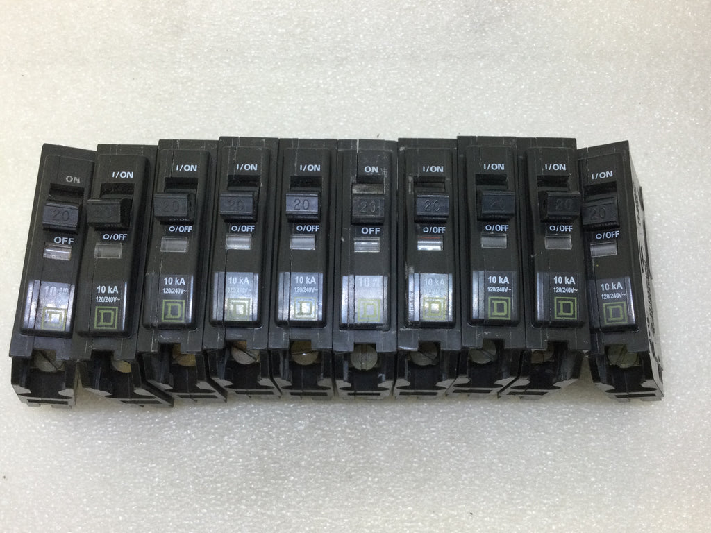 Lot of 10 - Square D QOB120 20 Amp 1 Pole 120/240V Bolt On Circuit Breaker - Yellow Face Black #'s