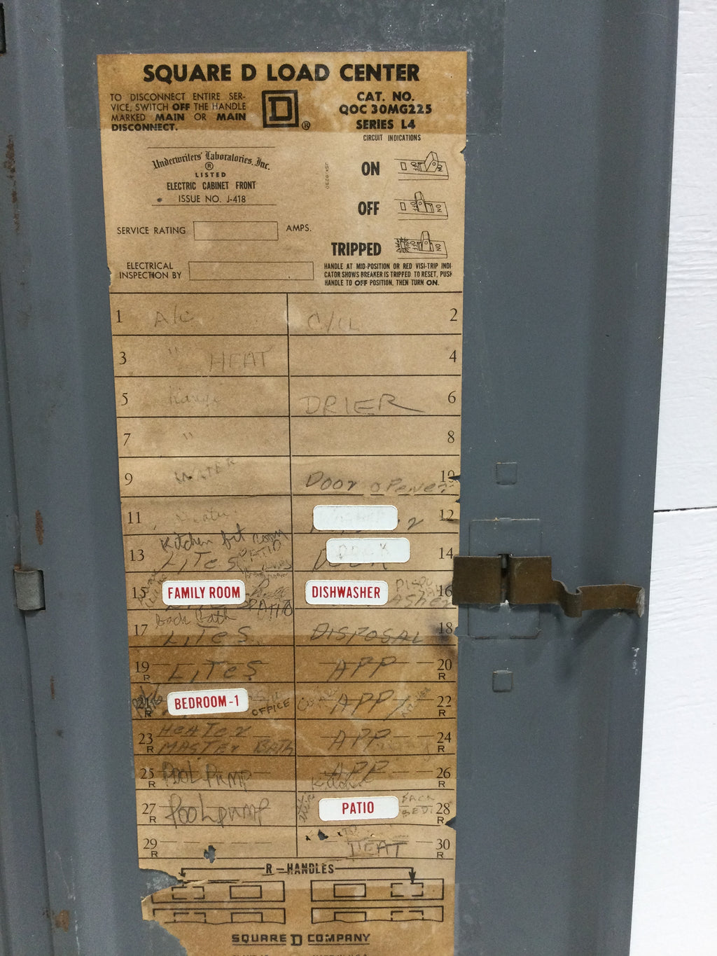 Square D QOC30MG225 Series L4 30 Space 30 3/4" x 12 1/4" Load Center Cover w/Main