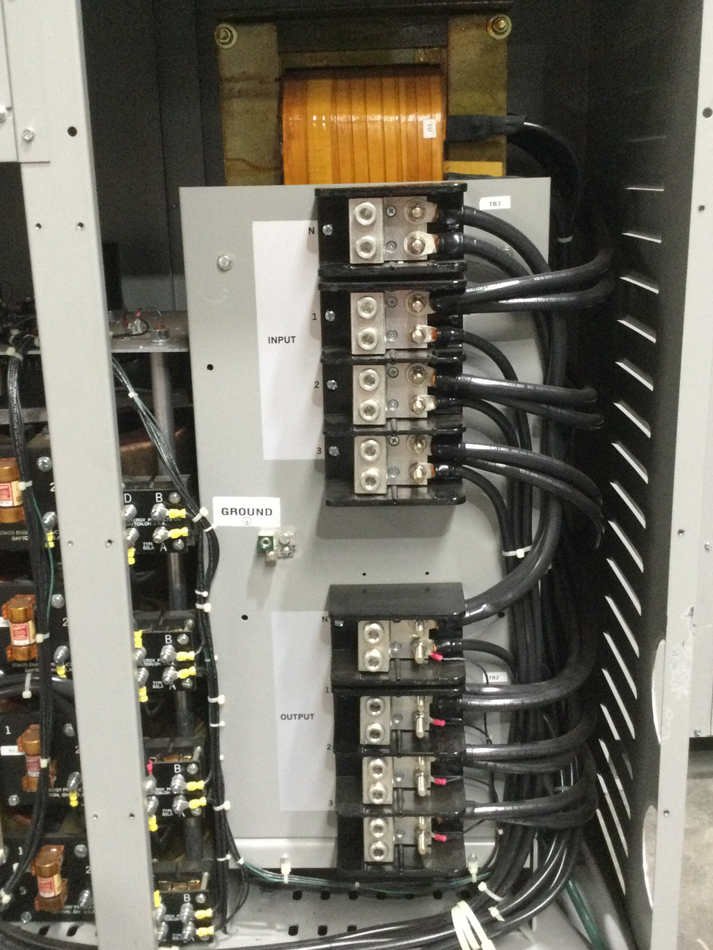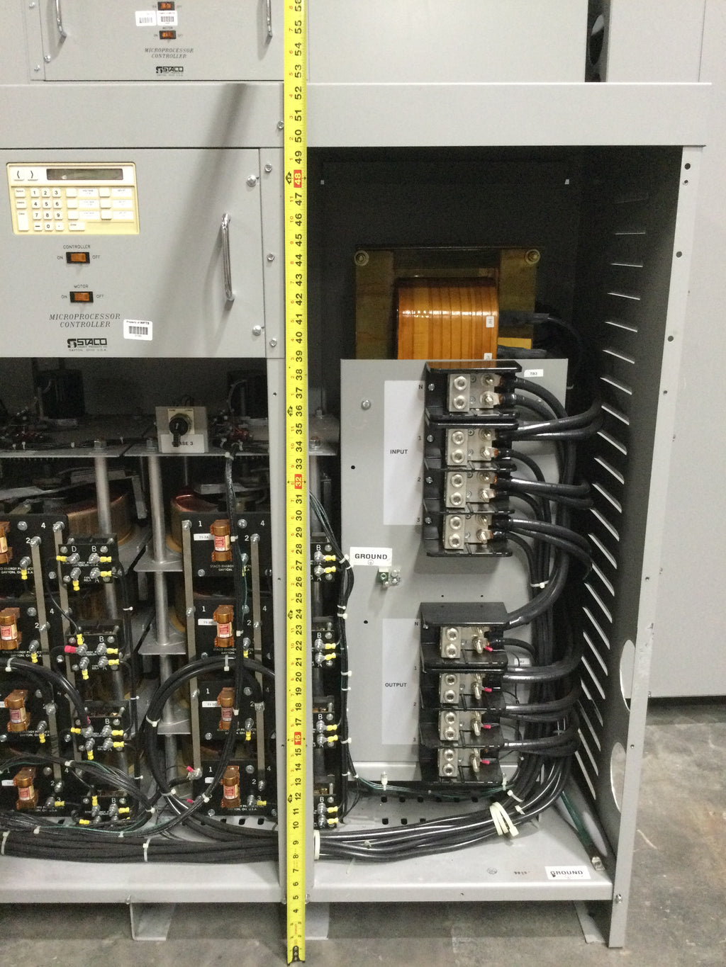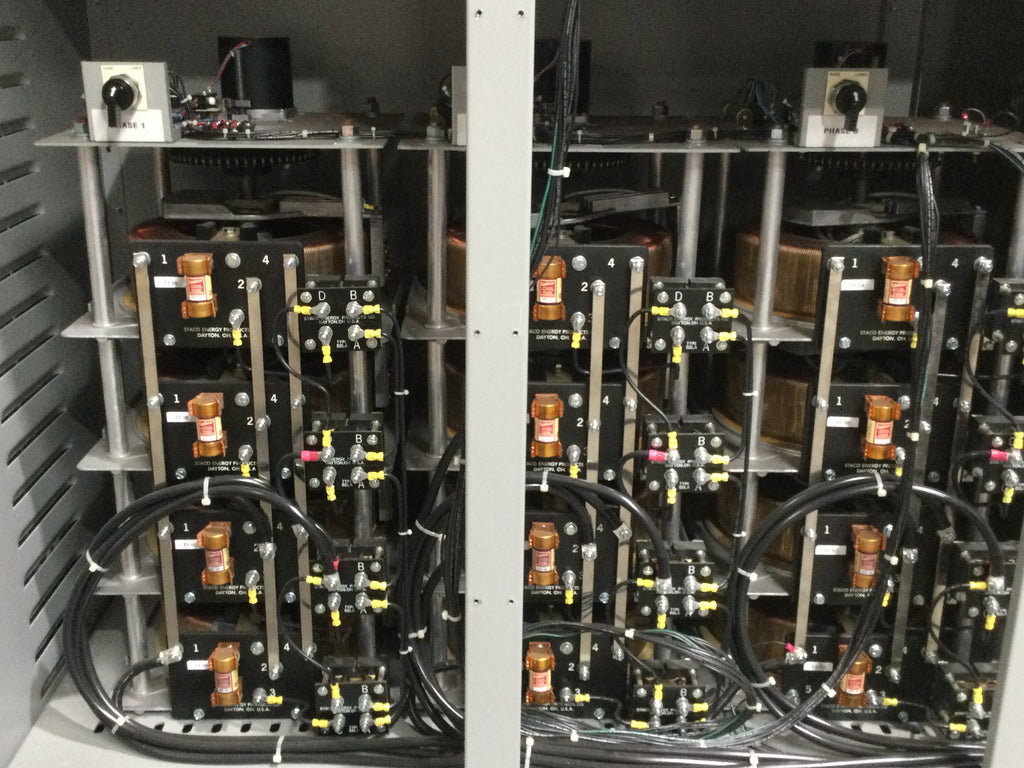 Staco Energy MVR-48TCIY333 400 Amp Input 408/526V Output 480Y/277V 3 Phase KVA333 Voltage Regulator 52.5" x 64.5" Model 034-8348 This industrial-grade voltage regulator is designed to deliver consistent voltage, stability, and reliability for your operation.
