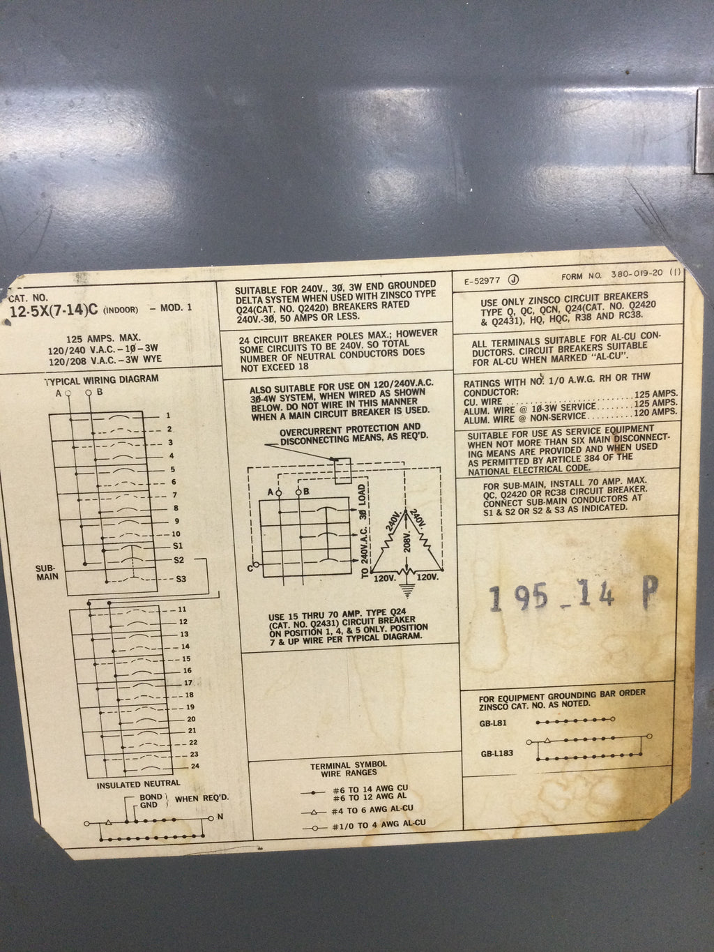 Sylvania 12-5X(7-14)C 125 Amp 120/240V 1 Phase 3 Wire 24 Space Indoor Cover
