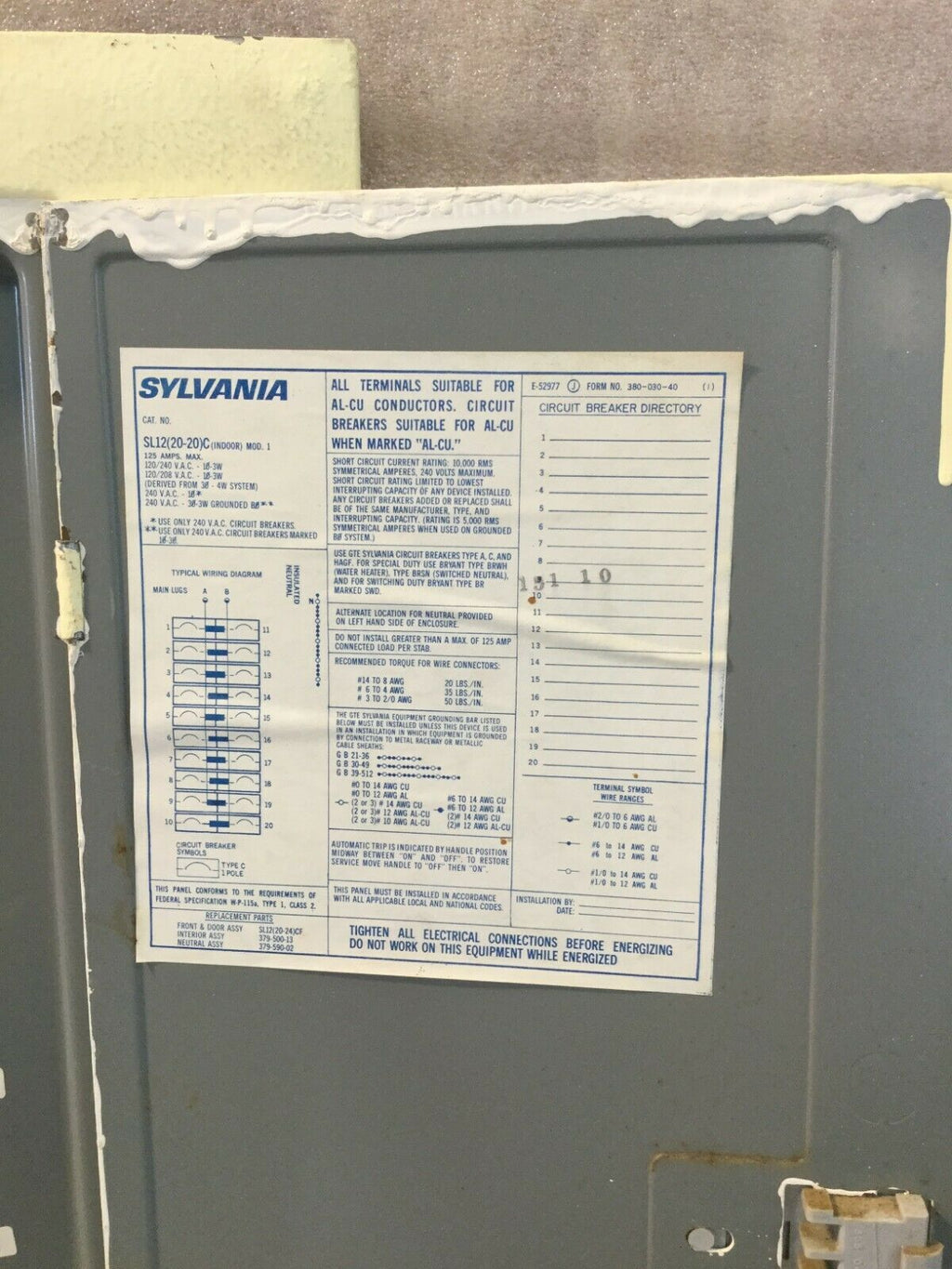 Sylvania Panel Cover/Door Only SL12(20-20) C 125 Amp 120/240v Type 1 Cover Only
