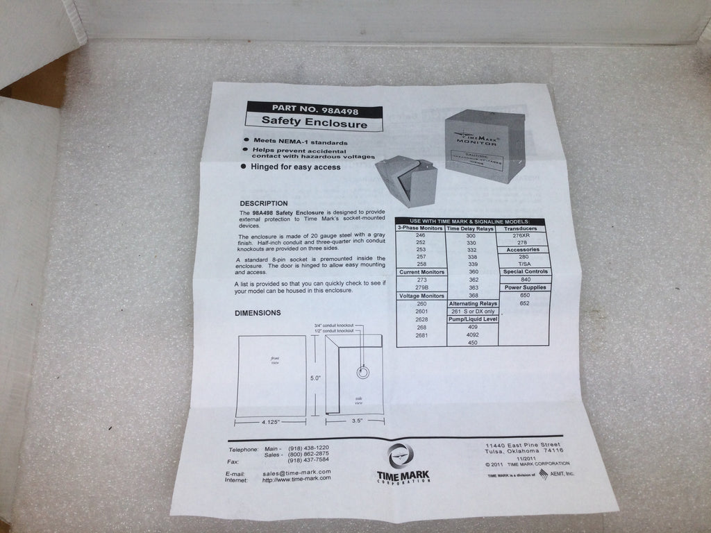 Time Mark Corp. 98A498 600VAC Max 8 Pin Relay Socket Nema1 Safety Enclosure (New)