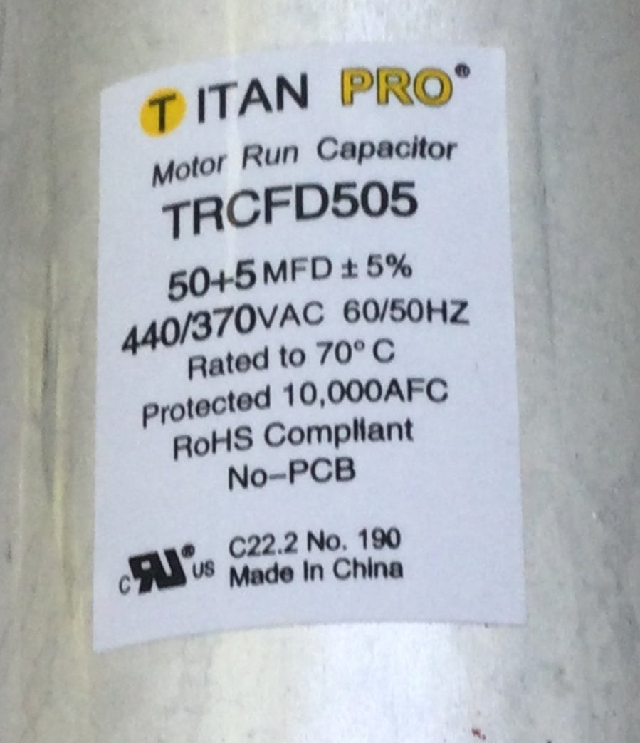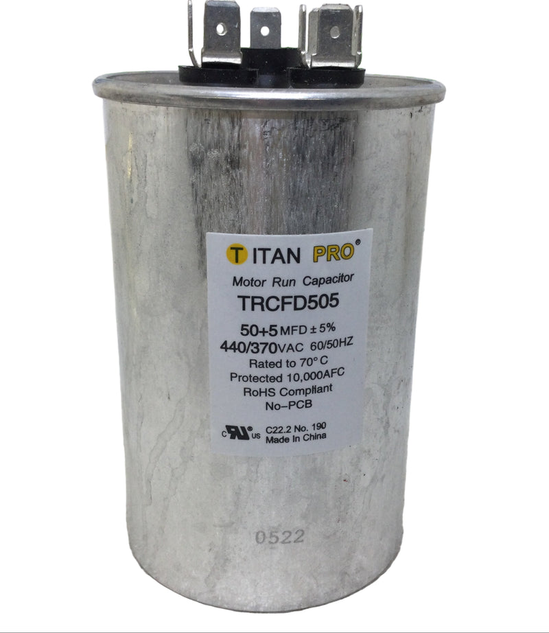 Titan Pro TRCFD505 50+5 MFD+/-5% 50/60Hz 370/440V Motor Run Dual Capacitor
