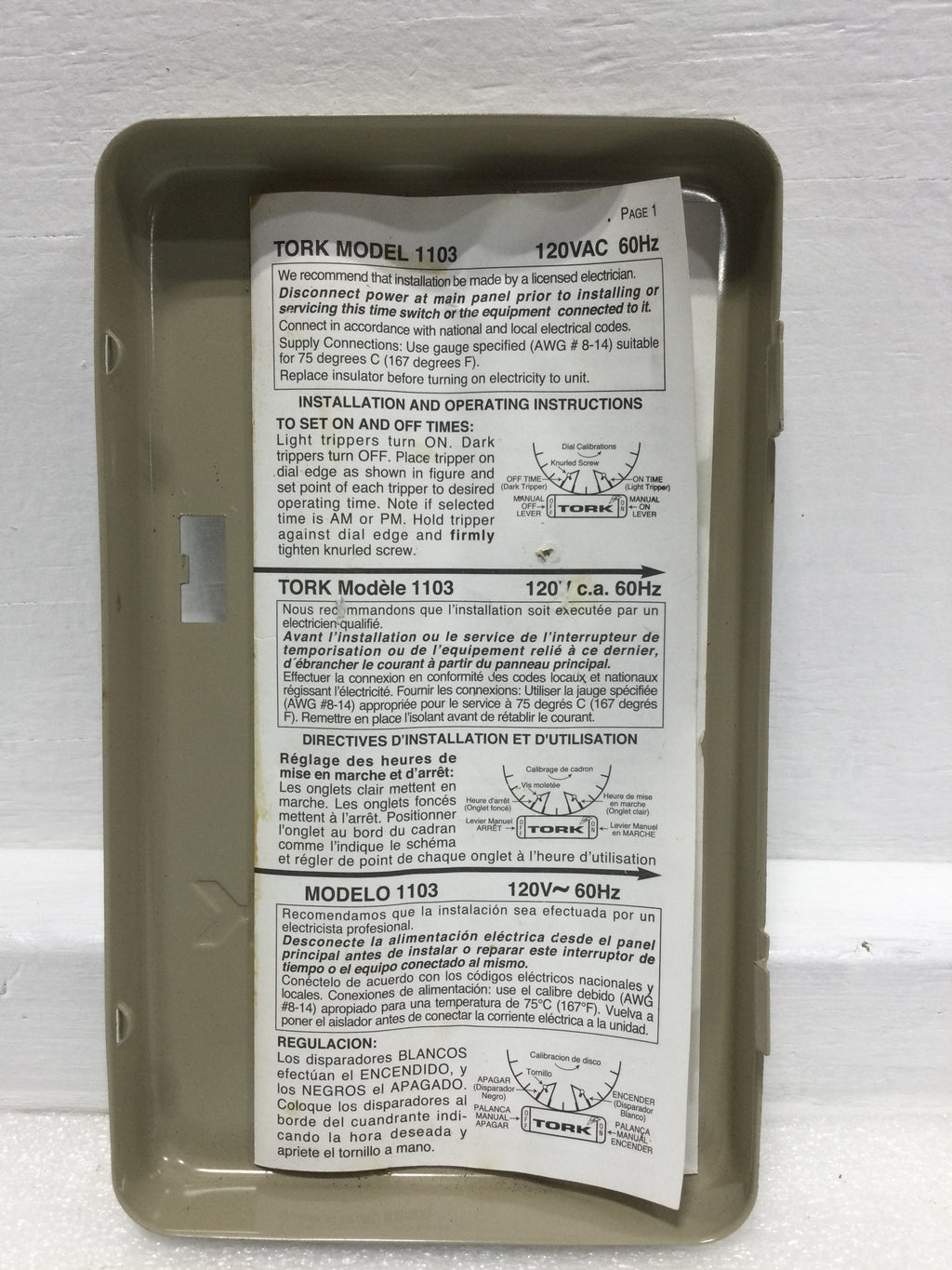 Tork Model 1103 24 Hr. Time Switch Cover/Door Only 40 Amp 120V