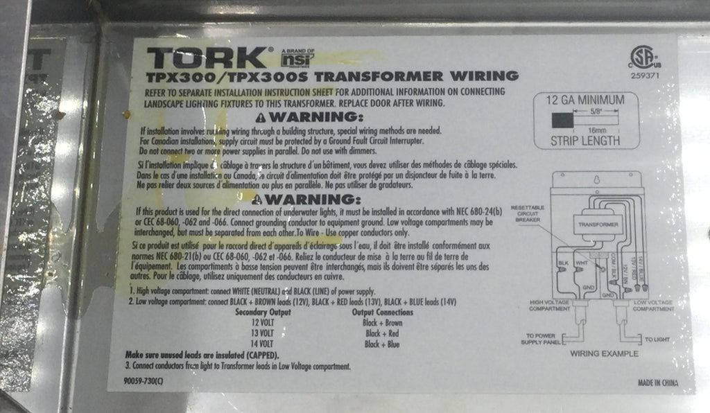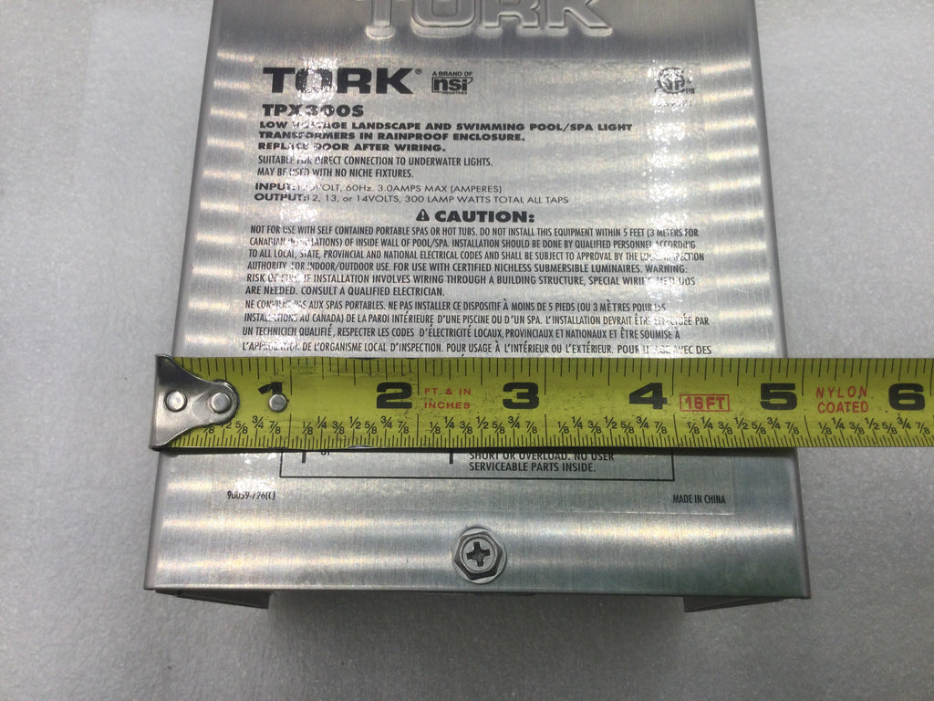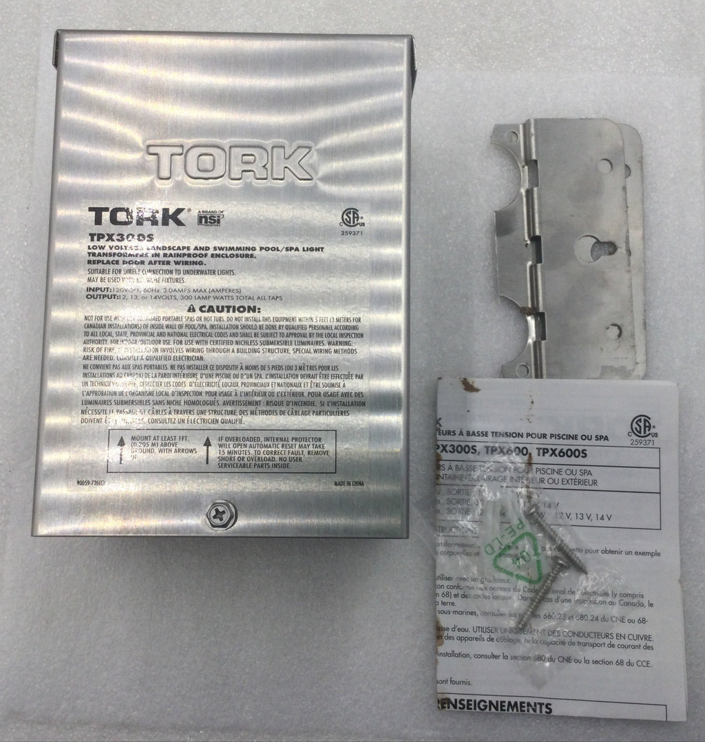 The Tork TPX300S is a durable low voltage transformer delivering 300W power with an input of 120V and output voltage ranging from 12V to 14V. Featuring a stainless steel input housing, it ensures long-lasting performance and resistance to corrosion, making it ideal for reliable, efficient electrical applications requiring stable low voltage power.
