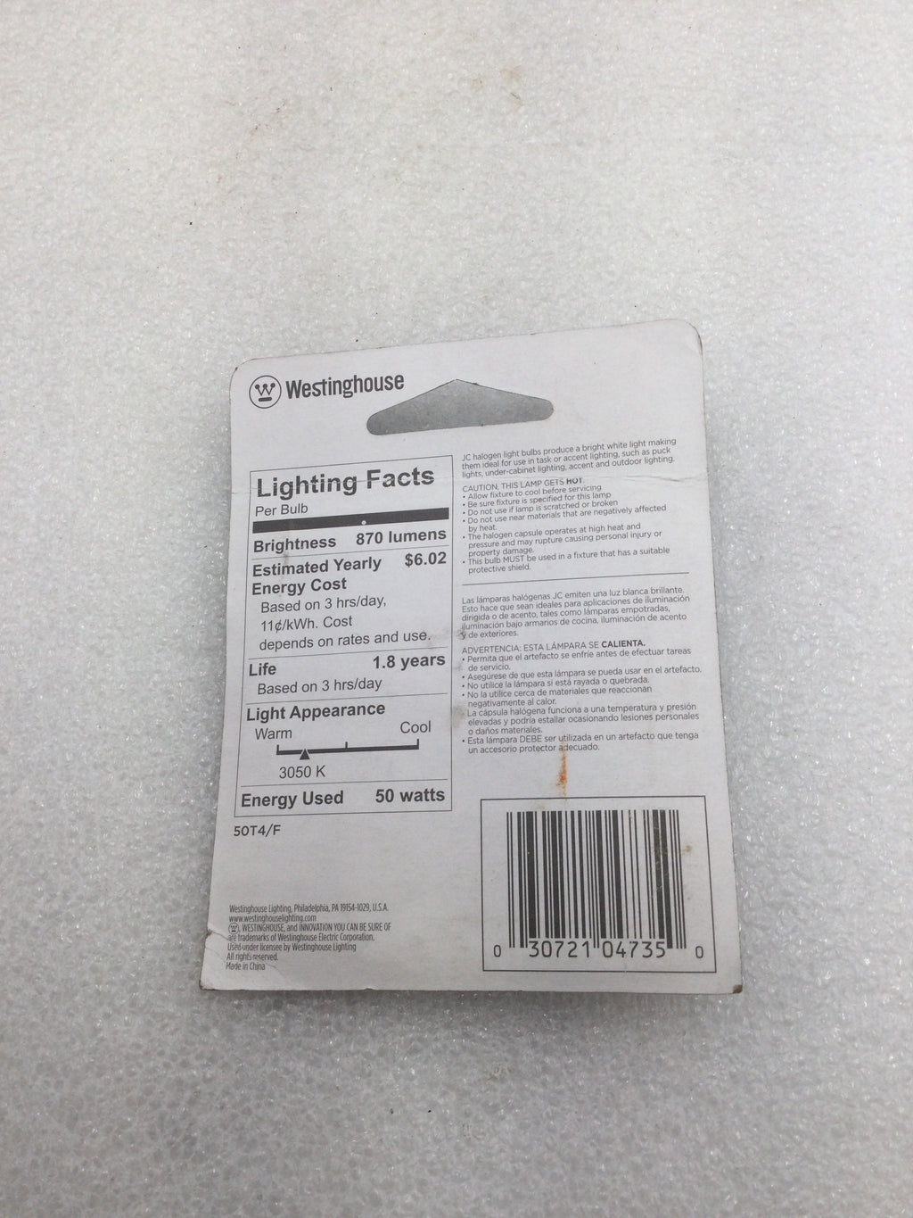 Upgrade your lighting with the Westinghouse 04735 Low Voltage Frosted Halogen Lamp. This 12 Volt, 50 Watt T4 JC lamp uses a GY6.35 base for easy installation and emits a soft, warm light. With its energy-efficient design and long lifespan, it's a smart choice for any space.