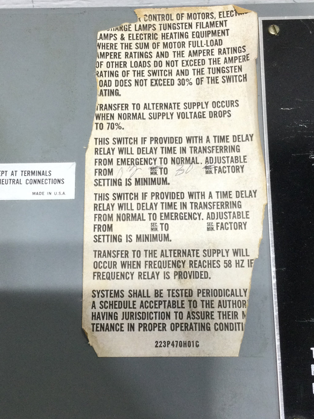 Westinghouse 147P569H01H Automatic Transfer Switch 300 amps 600VAC