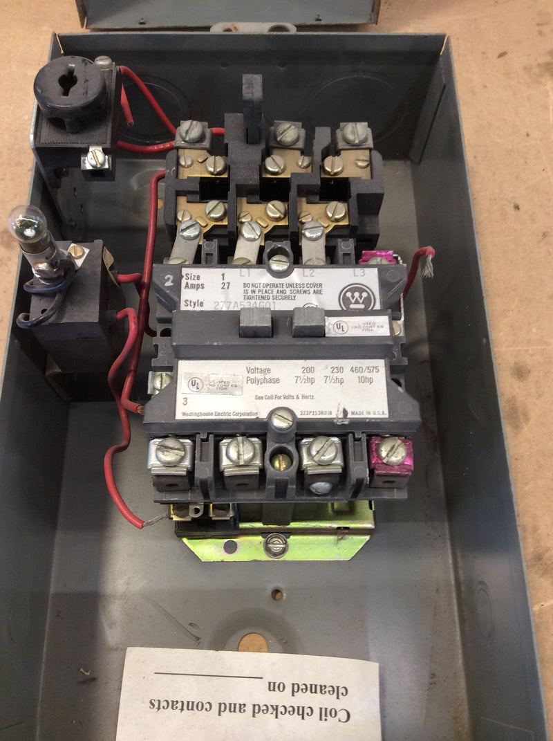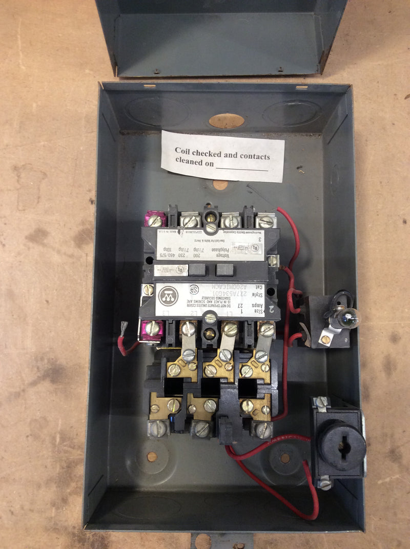 Westinghouse A200M1CACM 277A534G01 3 Pole 27 Amp 10Hp 600VAC Max Enclosed Motor Starter