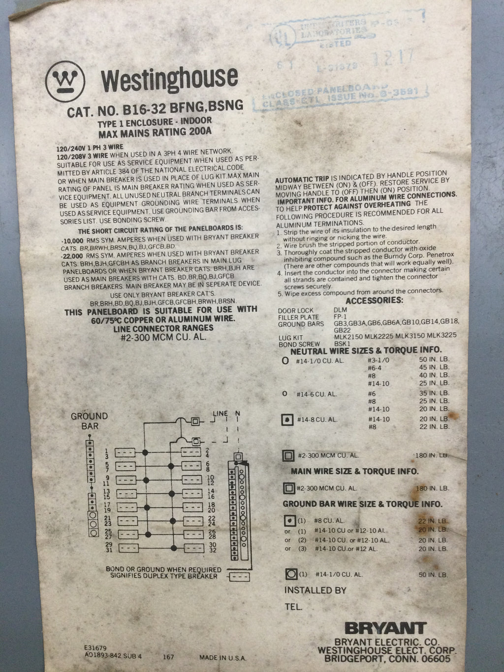 Westinghouse B16-32 200 Amp 120/240V 1 Phase 3 Wire 32 Space Panelboard Cover/Door 25 1/4" x 15.5"