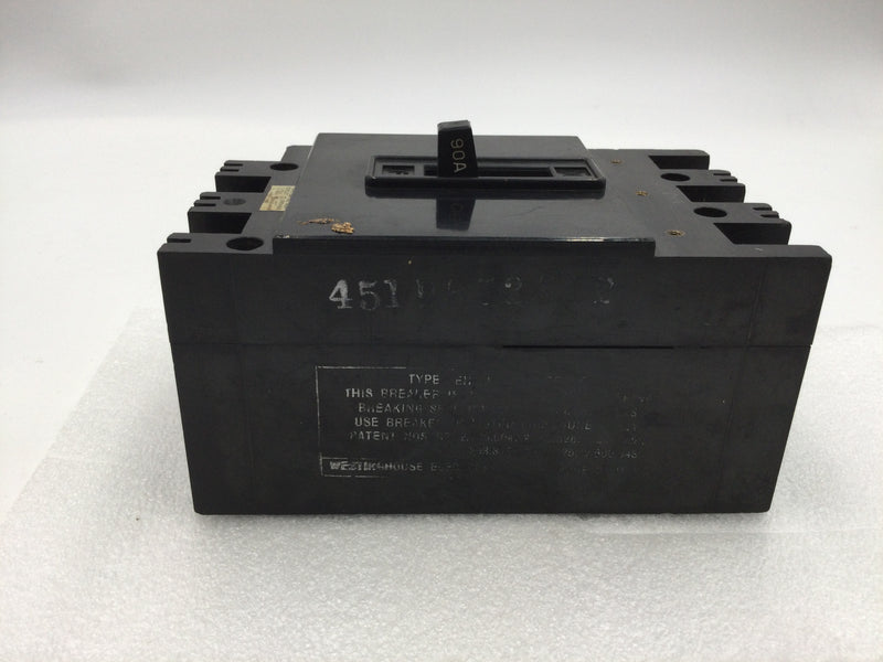 Westinghouse EH3090 3 Pole 90 Amp 480V Circuit Breaker