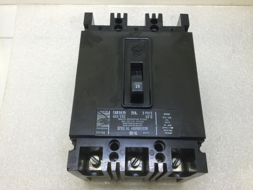 Westinghouse EHB3025 25 Amp 3 Pole 480V Type EHB Circuit Breaker