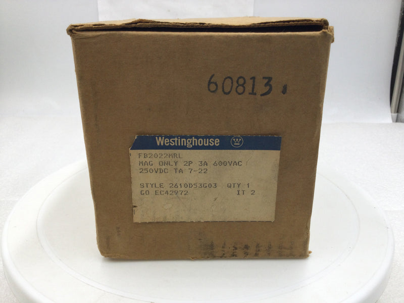 Westinghouse FB2022MRL 3 Amp 2 Pole 600V Molded Case Circuit Breaker