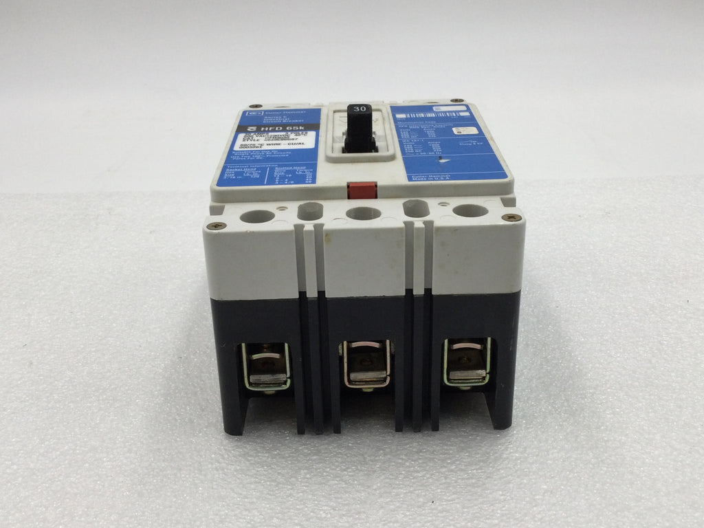 The Cutler Hammer HFD3030 is a 3-pole 30 amp 600v circuit breaker from the HFD 65k series. It provides maximum protection with high-performance breakers rated for maximum voltage of up to 600 volts. Highly reliable, this breaker stands up to harsh conditions and is designed for easy installation.