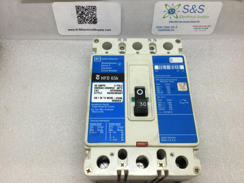 Cutler Hammer/Westinghouse HFD3030L Series C Industrial Circuit Breaker 30A 3P  600V