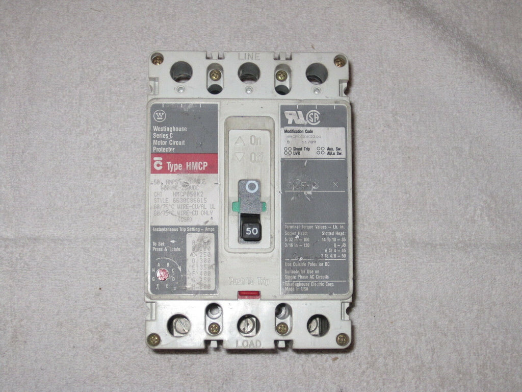 WESTINGHOUSE HMCP050K2  CIRCUIT BREAKER 50 AMP 600 VAC 3 POLE HMCP050