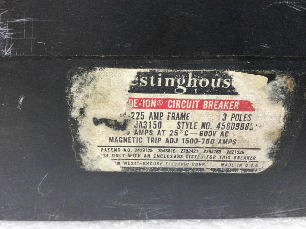 Westinghouse JA3150 225 Amp 3 Pole 600V Circuit Breaker w/150 Amp Trip