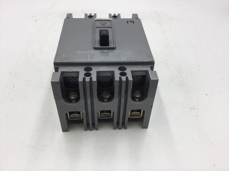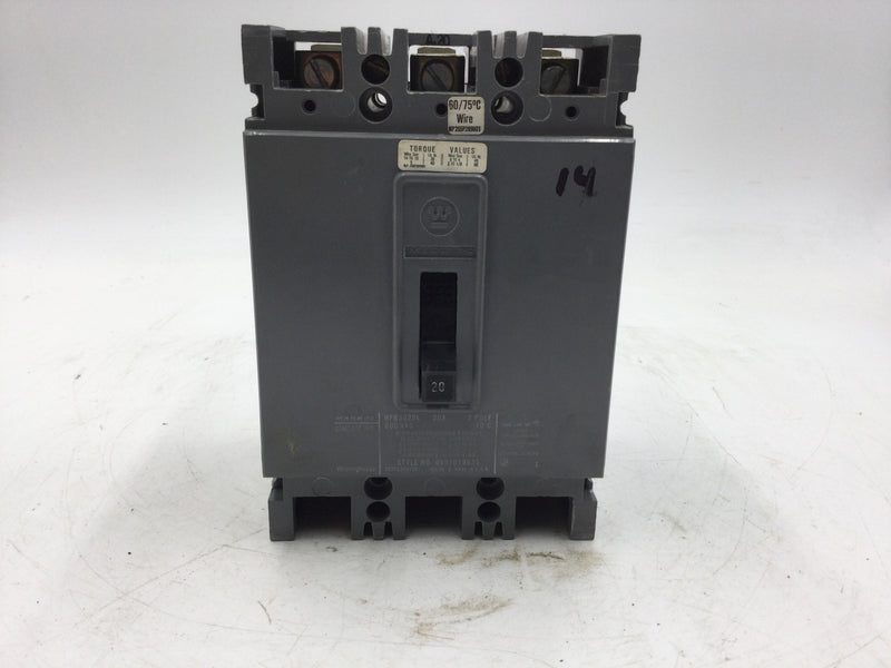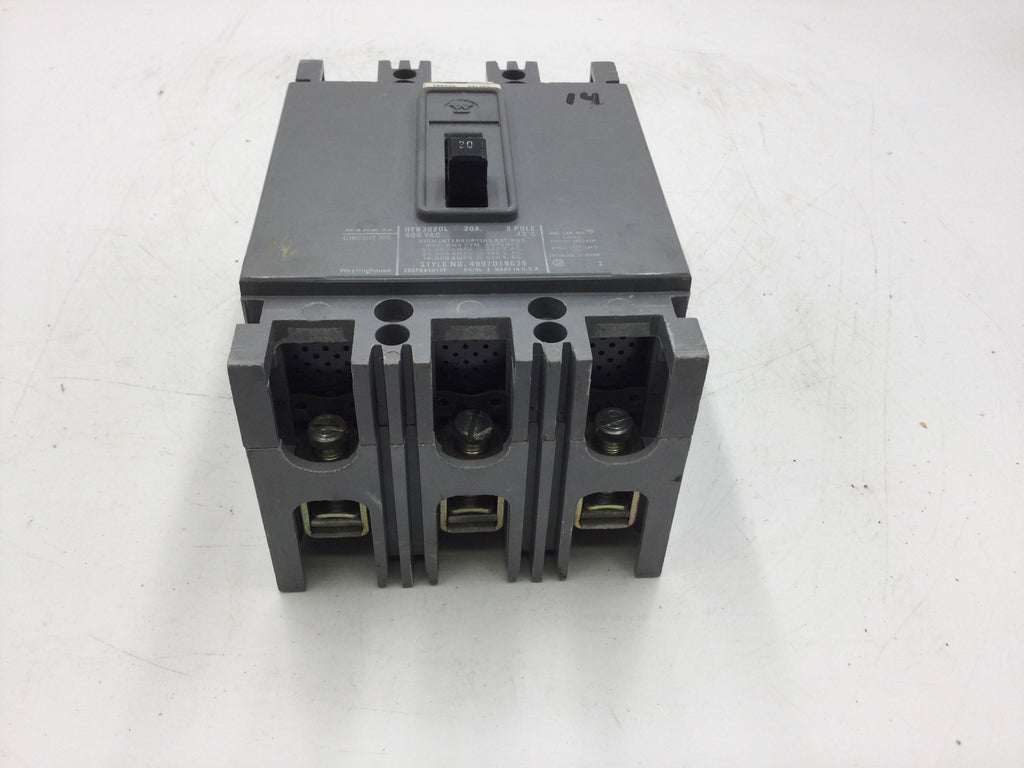 Westinghouse HFB3020L 20 Amp 3 Pole 600V Type HFB Circuit Breaker