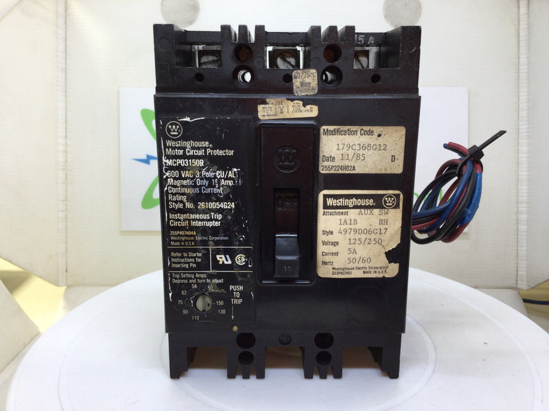 Westinghouse MCP03150R 15 Amp 600 Volt 3 Pole W/4979D06G17 125/250V 5A Aux Switch