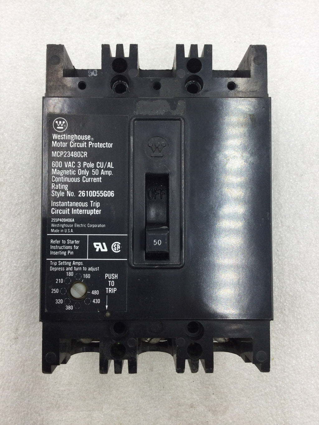 Westinghouse MCP23480CR 50 Amp 3 Pole 600V Circuit Breaker