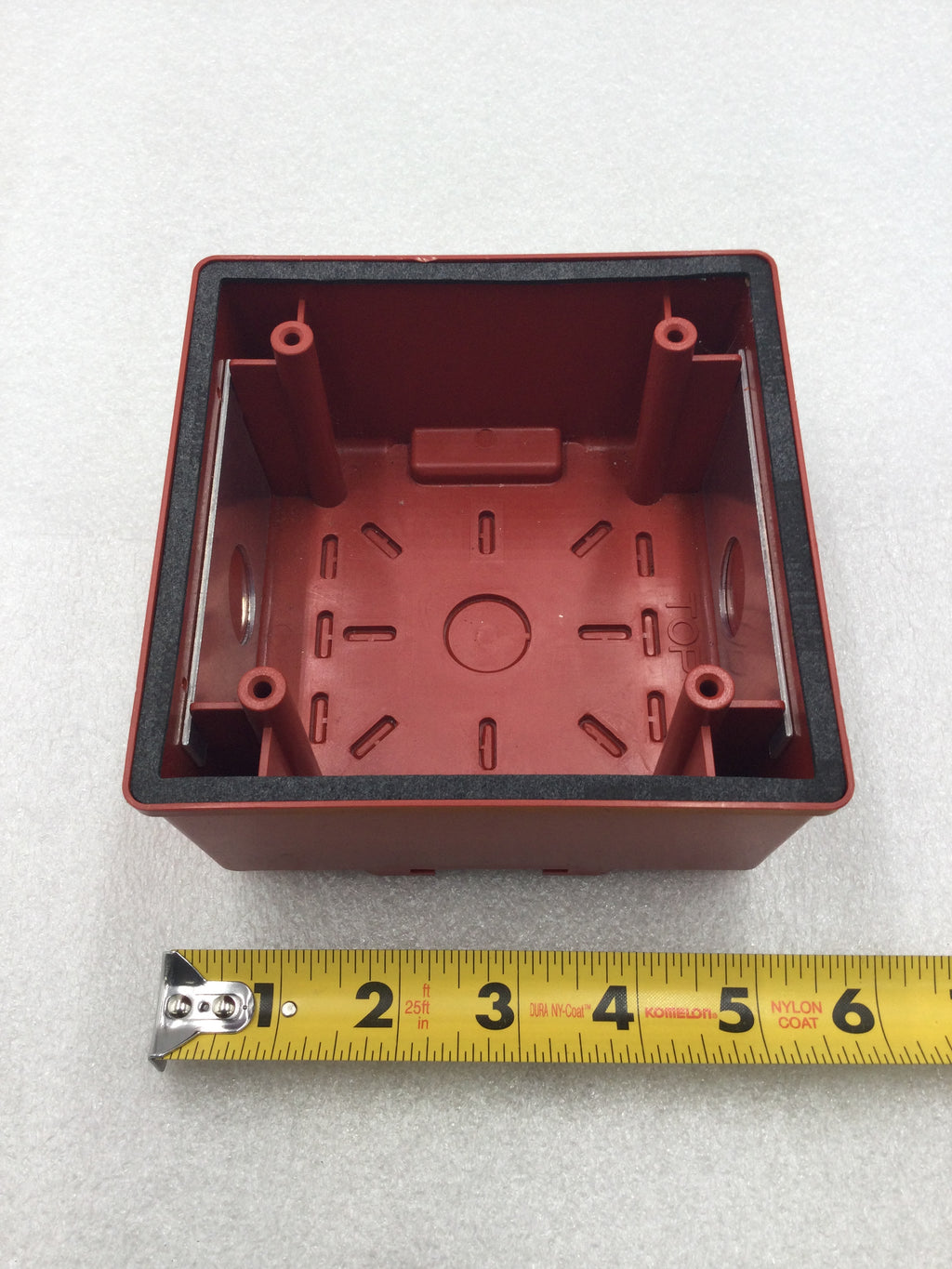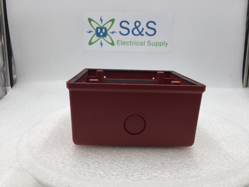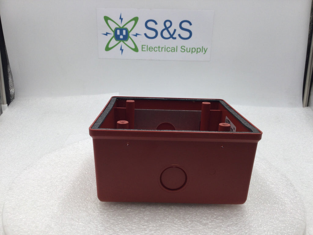 The Wheelock IOB-R is a rugged weatherproof back box engineered for outdoor alarm and notification device installations. Its red powder-coated finish provides corrosion resistance in harsh environments, while the durable construction protects mounted equipment from moisture, UV exposure, and temperature fluctuations. Designed for professional electrical installations, this back box ensures reliable performance in demanding applications where weather protection is critical.
