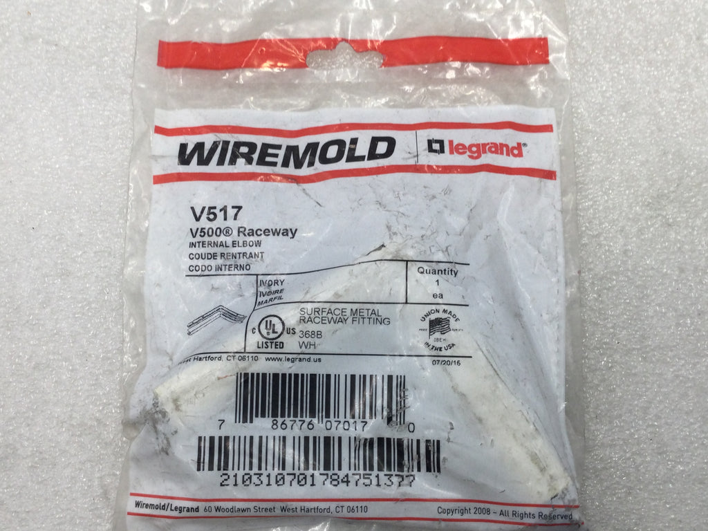 Wiremold/Legrand V517 V500 Raceway Internal Elbow Ivory