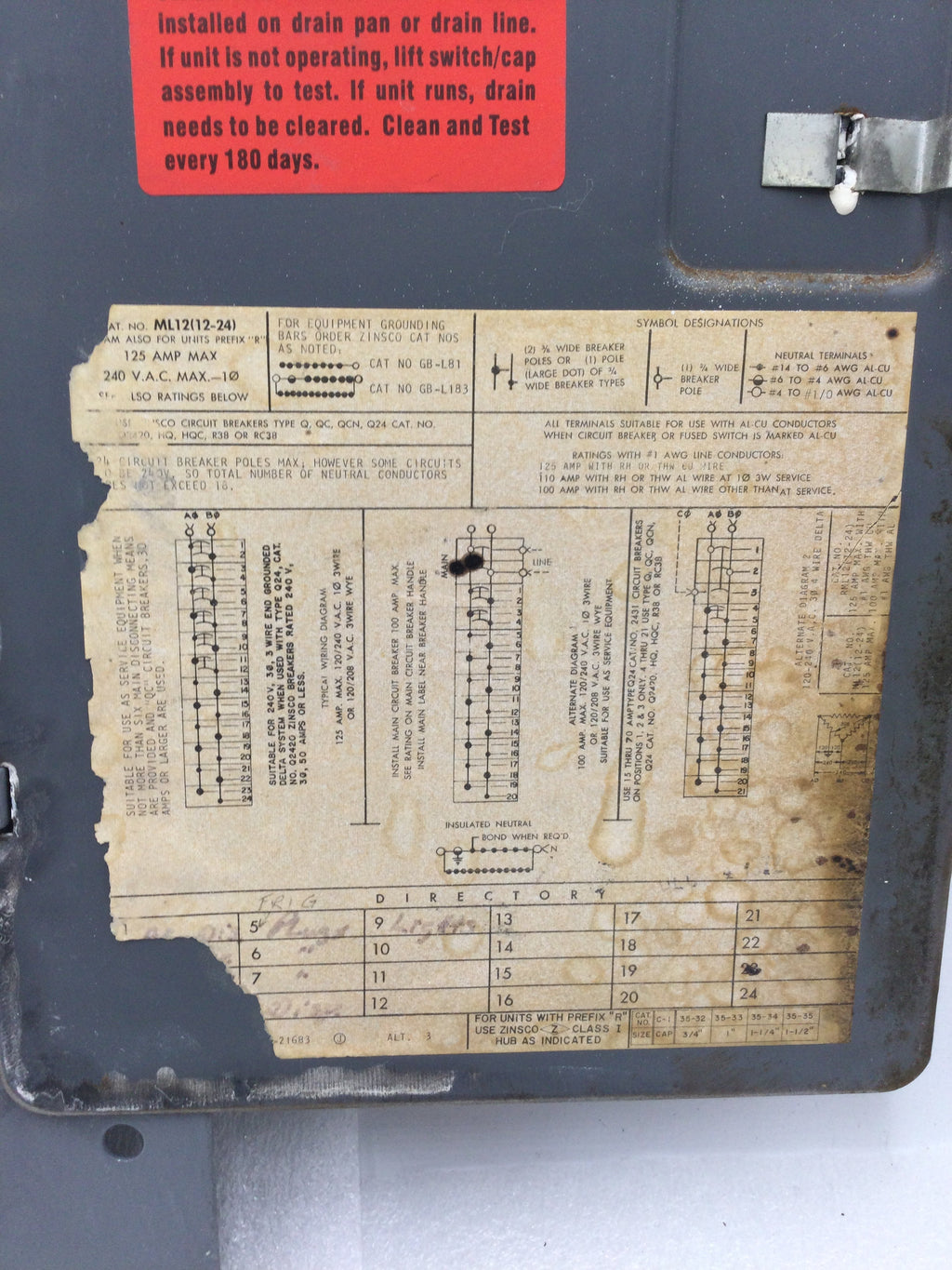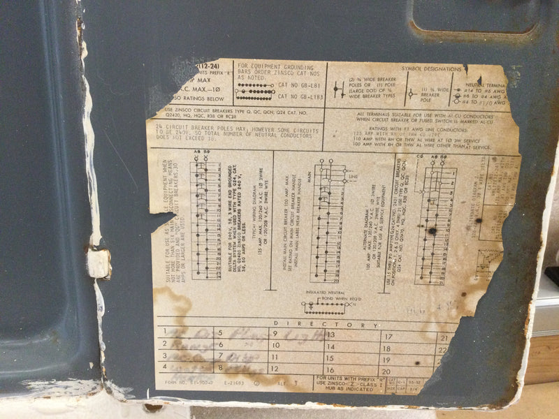 Zinsco ML12(12-24) 125 Amp 12 Space 120/240V Panel Door 21 1/4" x 10 7/8"